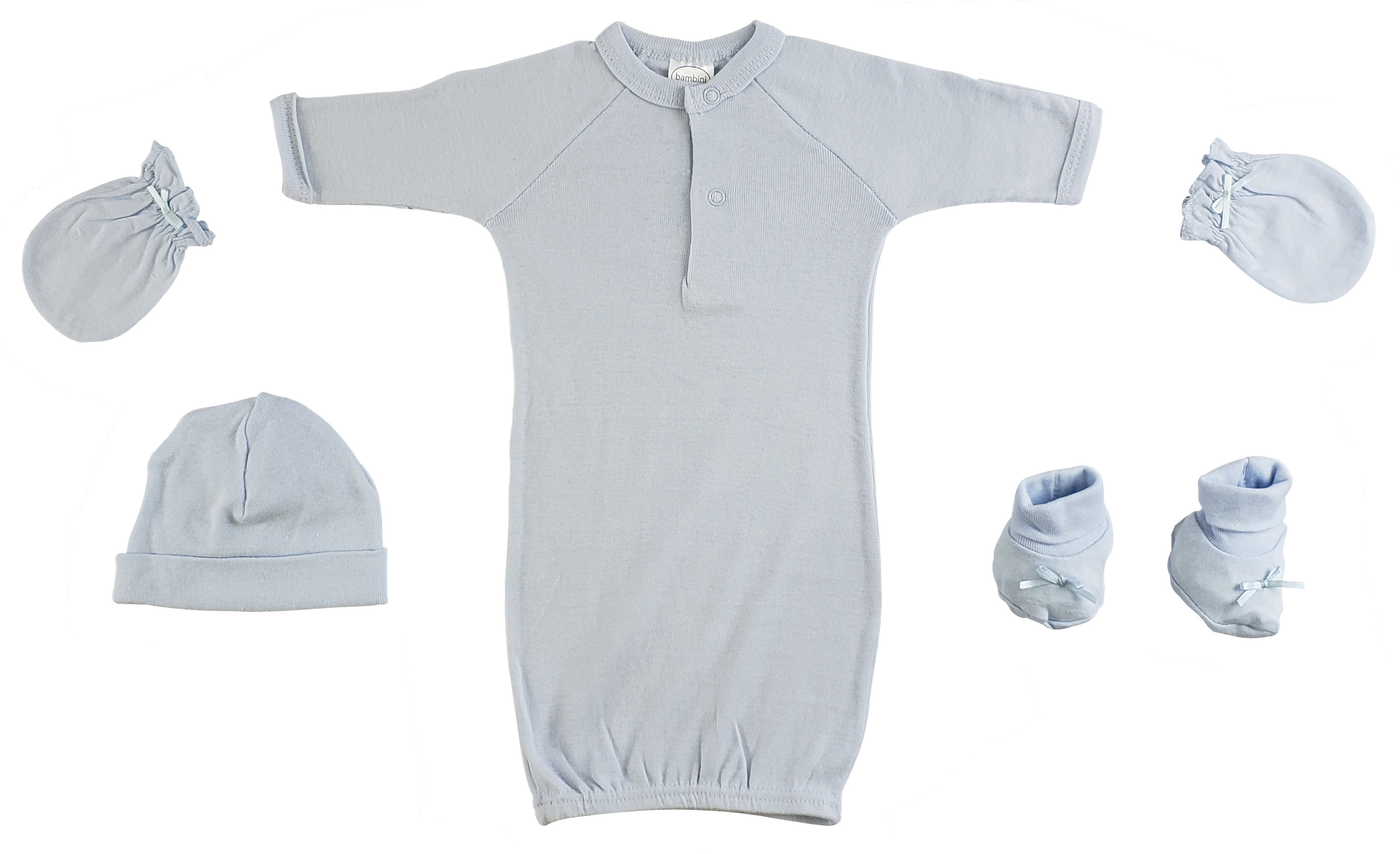 Preemie Rib Knit Pastel Cap & Booties Set (100% Cotton), Preemie Blue Infant Gown (100% Cotton), Blue Infant Mittens (Jersey)