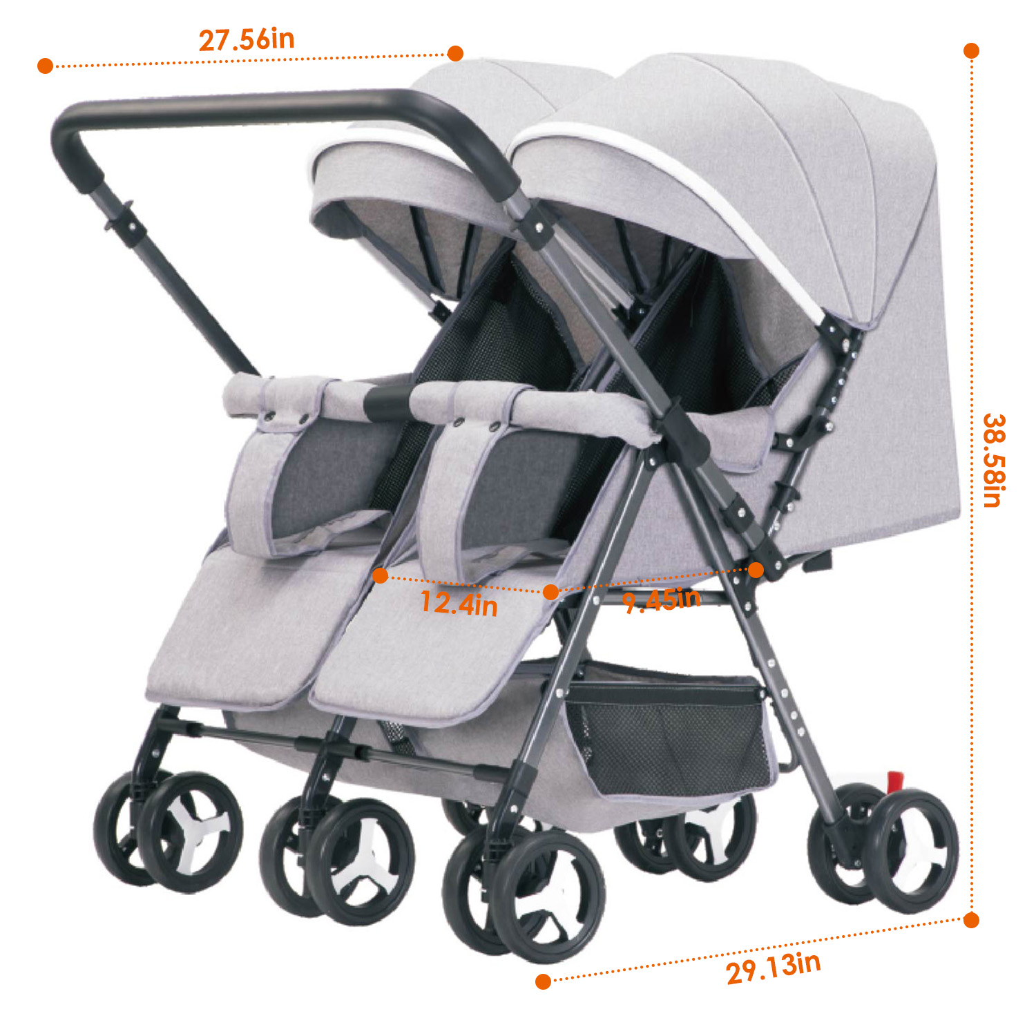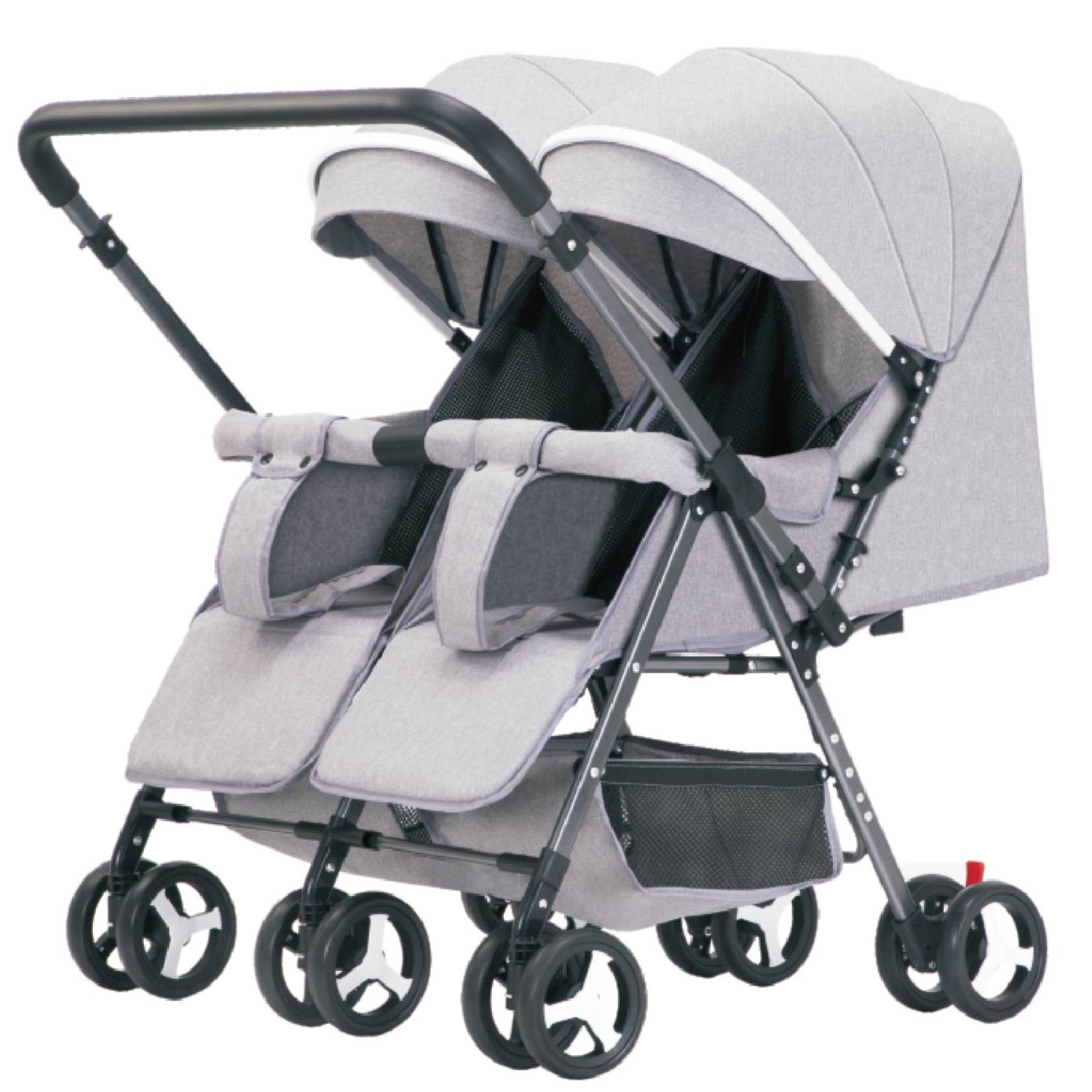 Looking for the perfect way to bond with your twins on the go? Our double stroller can be folded down and realizes effortless maneuverability while ensuring safety with inbuilt lockers during the outings, the ultimate solution for parents who want to explore the world with their little ones. The 90º- 175º reclining backrest and 30º-180º adjustable footrest assist your babies in sitting, half-lying or flat lying with comfortable angle. The 3-stage full canopy shields your little one from harmful UV rays and dazzling sunlight. Also come with 2 storage baskets to hold baby and your necessities. Constructed with carbon steel frame, this twin stroller can support up to 110lbs, sturdy and rustproof. Experience the joyness of togetherness on every adventure with our must-have side by side double stroller!