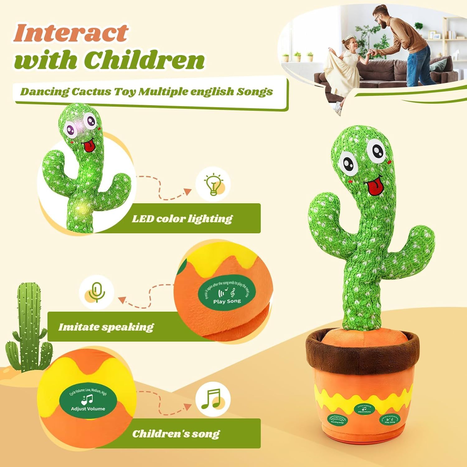 Home > Talking and Dancing Cactus Toy, Mimics Sounds, Plays English Nursery Songs, USB Rechargeable, Soft Plush, LED Lights